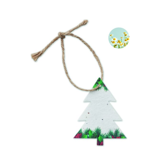 Ornament de Crăciun în formă de brad, din hârtie cu semințe de flori sălbatice și cu frânghie de iută. După utilizare, plantați hârtia și o să răsară flori sălbatice. Fabricat în UE. Decorează-ți bradul de Crăciun sau casa cu acest ornament din hârtie. După Sărbători, puteți planta acest ornament pentru a crește un amestec de flori sălbatice în grădină sau pe balcon, Un obiect cu adevărat durabil și reciclabil.