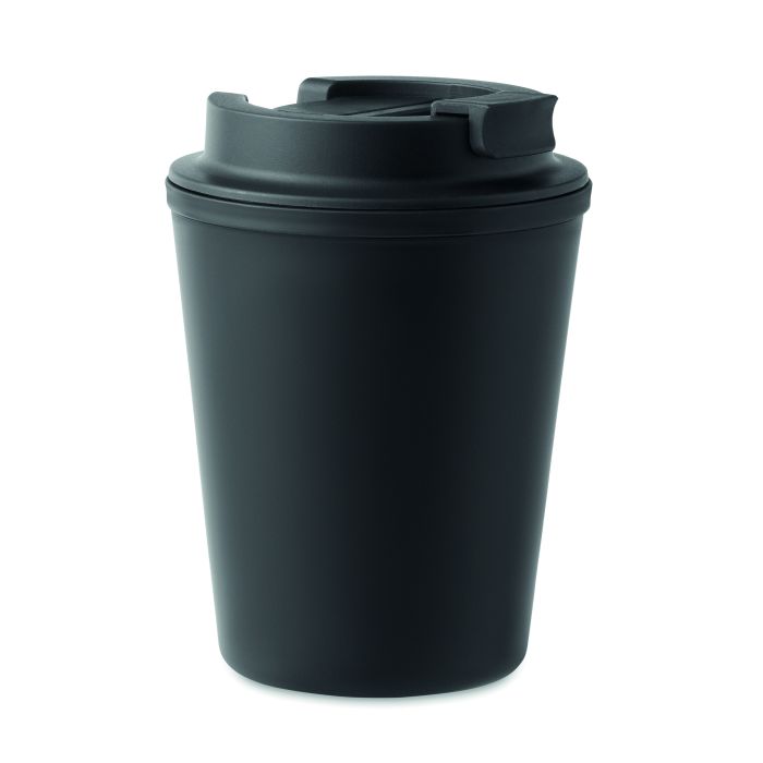Pahar de băut cu două pereți și capac de băut din PP. Capacitate: 300 ml.