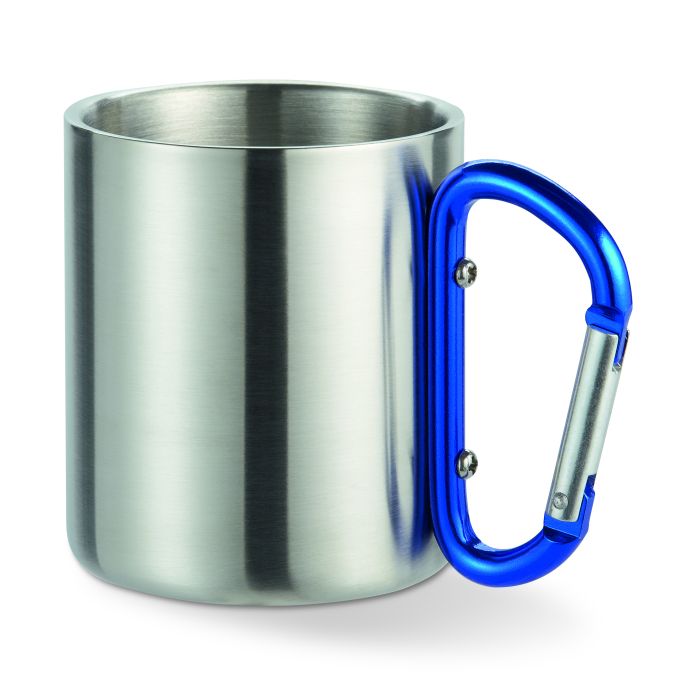 Cană cu perete dublu, din inox cu perete dublu și carabină. 220 ml.