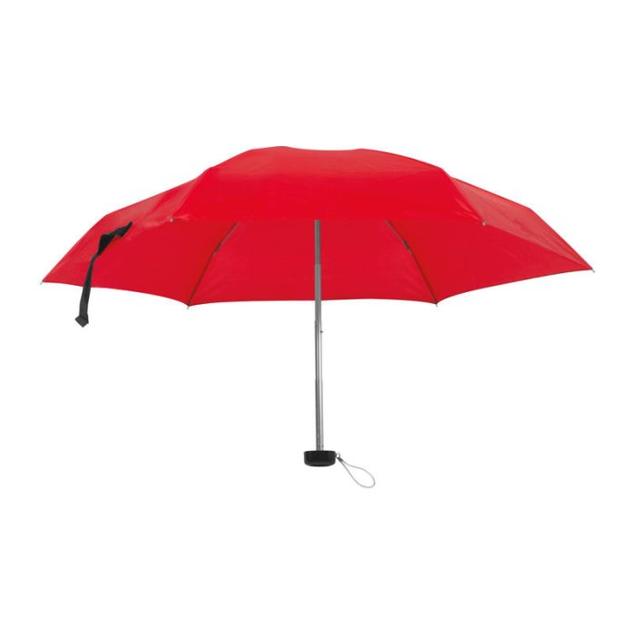 Mini umbrelă fabricată din polyester 190T, într-o husă EVA, cu închidere cu fermoar.