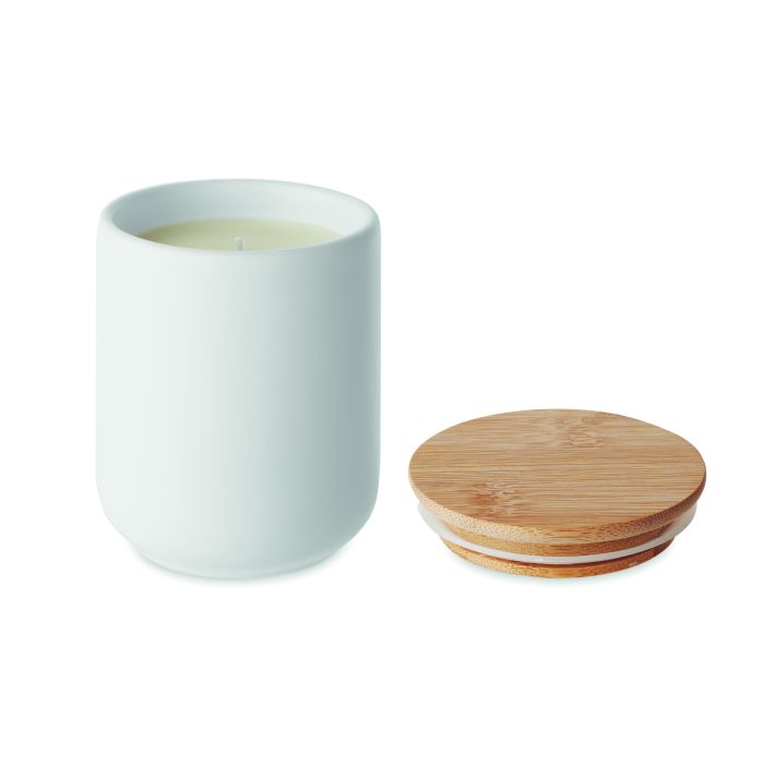 Lumânare parfumată din ceară pe bază de plante în borcan ceramică cu capac din bambus. 200 gr. Timp de ardere: 36 ore. Bambusul este un produs natural, în consecință pot apărea diferențe de culoare, dimensiune sau desen. Fără scurgere.
