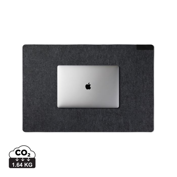 Spacious desk pad tailored for the contemporary office. Designed with a sleek, clean aesthetic using GRS recycled felt with a mélange effect. Anti-slip dots on the reverse guarantee stability, ensuring the pad remains firmly in position. Size: 75x50cm. Certified by GRS (Global Recycled Standard), GRS certification guarantees that the entire supply chain of the recycled materials is certified. The total recycled content is based on the overall product weight. This product contains 89% GRS recycled felt.