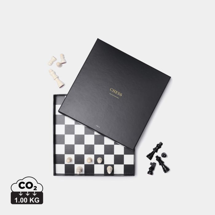 Classic chess game in black and white. The pieces are lacquered wood. The game comes with an excellent storage box that also works as an attractive decorative detail in your home.