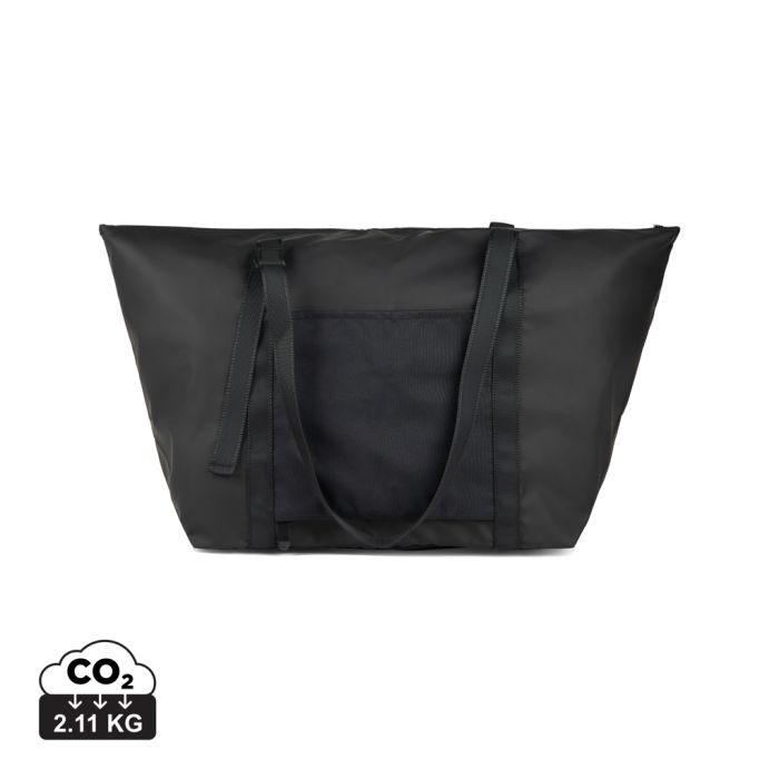 A perfect travel companion, this weekend bag is crafted from super lightweight GRS certified polyester with a sleek PU coating. Simply fold it and secure with the clever strap and buckle for storing compactly when not in use. Featuring a clever outer pocket that transforms into a secure trolley sleeve that allows you to slip it over a wheeled suitcase or trolley. Featuring adjustable straps to carry by hand or over your shoulder. Smaller inner pocket for your essentials. These versatile bags are not only easy to carry but are also designed to fold and store compactly in your luggage, providing convenient extra storage without weighing you down. Certified by GRS (Global Recycled Standard), this certification guarantees that the entire supply chain of the recycled materials is certified. The total recycled content is based on the overall product weight. This product contains 52% GRS certified recycled polyester.