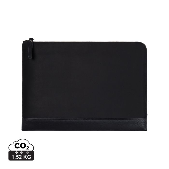 Protect your laptop in style with this sleek padded sleeve. Features an extra long zipper closure for easy access. Inside, a convenient pocket for smaller items. Please note: Display dimensions may vary from laptop dimensions. Marlow series crafted from recycled faux suede with PU details and lining in recycled polyester. Finished with sleek silver hardware. Certified by RCS (Recycled Claim Standard), RSC certification guarantees that the entire supply chain of recycled materials is certified. The total recycled content is based on the overall product weight. This product contains 49% RCS certified recycled polyester and 3% RCS certified recycled polyurethane
