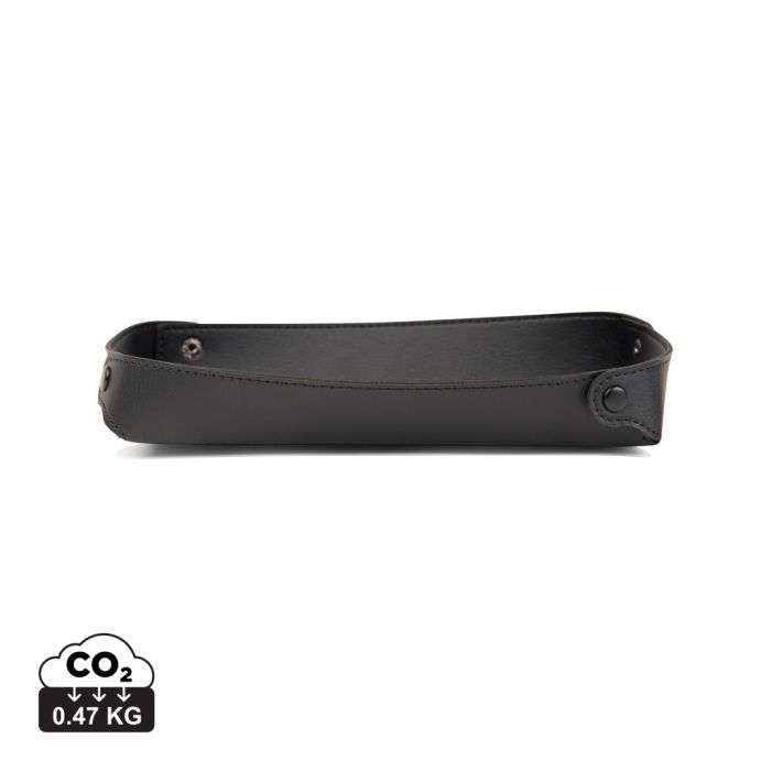 Elevate your space with the Timo tray, where practicality meets sophistication. Equipped with press buttons at each corner, when the corners are fastened together, it conveniently transforms into a tray. Detail stitching around the tray adds a touch of refinement. With dimensions of L: 20,5 cm x W: 11,5 cm x H: 3,5 cm when folded, it's perfect for organising your essentials. Certified by RCS (Recycled Claim Standard), RCS certification guarantees that the entire supply chain of recycled materials is certified. The total recycled content is based on the overall product weight. This product contains 40% RCS certified recycled polyester.