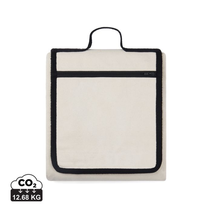 Sit comfortably on this stylish picnic blanket made from 340 gsm recycled canvas. Perfect for sunny days in the park or by the beach. The picnic blanket is equipped with a handy pocket and handles for easy carrying. The canvas remains undyed and unbleached, eliminating any environmental impact from chemicals. Crafted from 100% recycled material, this bag reinforces our dedication to responsible sourcing. Features the AWARE™ tracer technology, validating the genuine use of recycled materials. 2% of the proceeds of each product sold will be donated to Water.org.