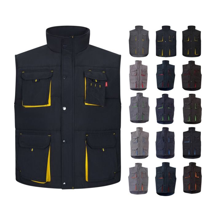 Vestă matlasată cu mai multe buzunare (220g/m²), din poliester (100%). Cu închidere cu fermoar, ascunsă prin butonieră. Talie elastică pe lateral și windbreaker în axilă. Cu șapte buzunare (1 buzunar pe piept, 2 buzunare inferioare, 2 buzunare laterale și 1 buzunar cu burduf pe piept). Mărime: S, M, L, XL, 2XL, 3XL