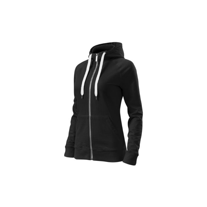 croială cambrată ce prezintă cusături laterale, fermoar de metal pe toată lungimea, logo-ul este gravat pe închizătorul fermoarului, glugă căptușită, prevăzută cu șnur, interiorul gulerului prezintă bandă de întărire, mâneci raglan ce prezintă cusături decorative, buzunare tip marsupiu, tivul inferior și manșetele sunt din material raiat 2:2 cu 5 % elastan, elemente contrastante, interior nepieptănat