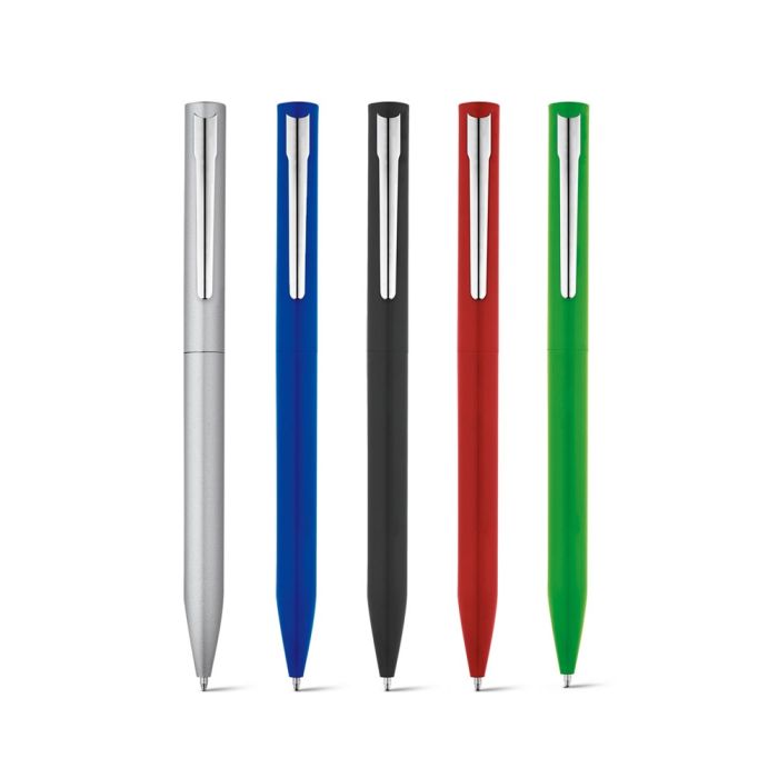 Pix din aluminiu cu mecanism rotativ, clip din fier cu placare cromată lucioasă. Corp lăcuit cu finisaj lucios, cu rezervă din metal și cerneală Dokumental® albastră. Disponibil într-o gamă largă de culori. ø10 x 138 mm