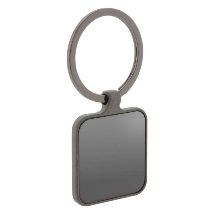 Breloc pătrat din metal cu finisaj metalic și suprafeţe strălucitoare pe ambele părți.