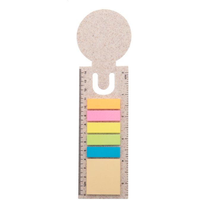 Semn de carte și riglă din plastic ecologic din paie de grâu, cu 25 de note adezive și 125 de markere de pagini (în 5 culori diferite).