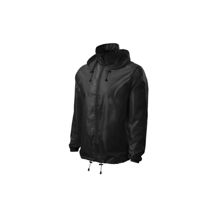 material ușor, anti-vânt, fermoar spiralat pe toată lungimea, glugă ascunsă în interiorul gulerului, șnur elastic aplicat la glugă și la tivul inferior, buzunare cu bordură, săculeţ separat, cu fermoar, în care se depozitează jacheta