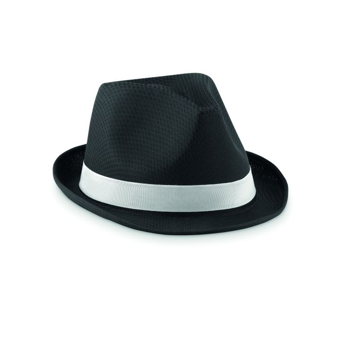 Pălărie colorată din paie, cu bandă albă din poliester. Pentru comenzile neimprimate banda colorată se livrează separat, nu sunt atașate pălăriei.