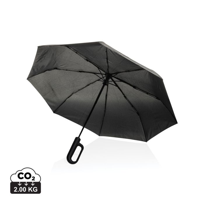 Smart and stylish, this umbrella is made to keep you dry on the go. Easy to carry, this umbrella has an auto-open comfortable grip, a windproof system that keeps the umbrella stable even in strong winds. The unique design with a carabiner handle allows you to hang the Yara umbrella on your backpack. Metal frame, fibreglass ribs with ABS handle. With AWARE™ tracer that validates the genuine use of recycled materials. 2% of proceeds of each Aware™ product sold will be donated to Water.org. Registered design.