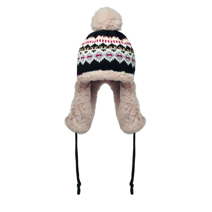 Căciulă tricotată cu urechi și pompon din fibră acrilică, căptușită cu poliester și fleece. Include etichetă pentru imprimare pe o parte. Dimensiune pentru adulți.