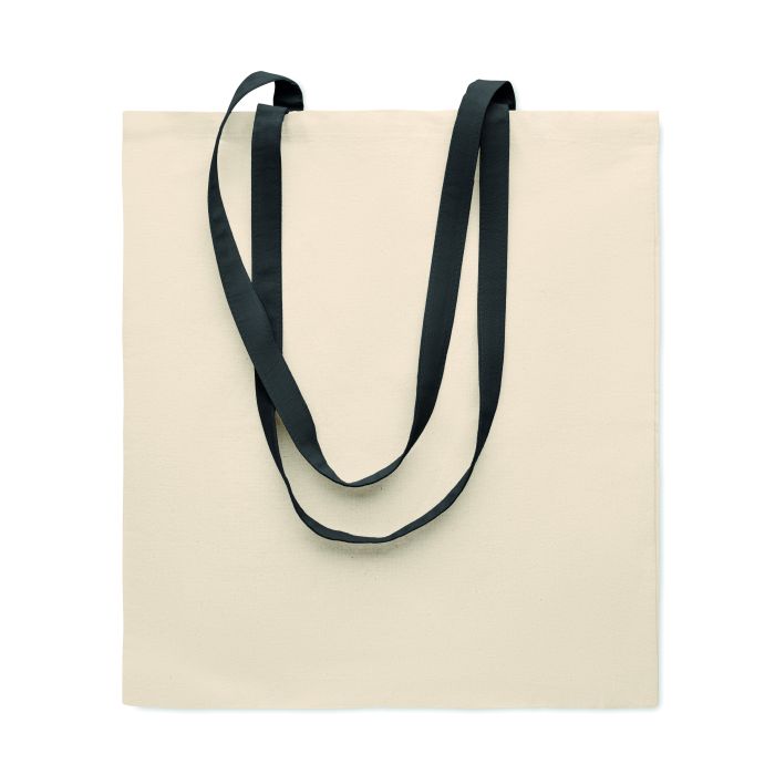 Sacosă de cumpărături cu mânere lungi și colorate, confecționată din bumbac. 140 gr/m². Această sacoșă este perfectă pentru cumpărăturile zilnice sau pentru alte activități de shopping. Este disponibilă cu mânere de diferite culori. Purtați geanta pe umăr atunci când este grea și pentru a vă păstra mâinile libere. Capacitate: 2,5kg. Acest produs este certificat OEKO-TEX® STANDARD 100.