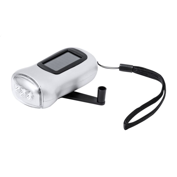 Lanternă cu 3 LED-uri, cu alimentare dublă, cu încărcător solar și dinam manual. În carcasă din plastic ABS cu curea de transport.