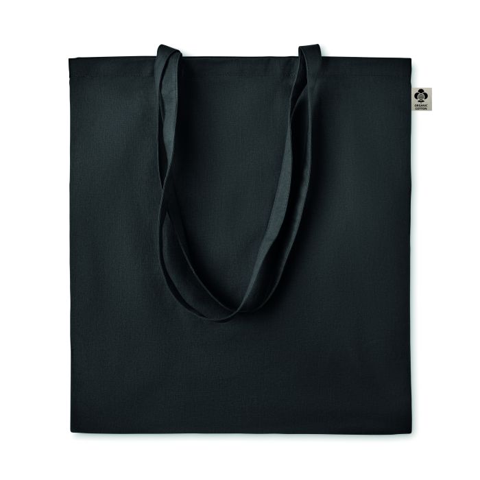 Sacoșă de cumpărături din bumbac organic, cu mânere lungi. Un design clasic de sacoșă de mână realizat pentru a transporta produsele alimentare zilnice sau alte obiecte. Cu mânerele lungi duceți geanta în mână sau pe umăr. Fabricată din bumbac organic 100% natural 140 gr / m². Acest produs este certificat OEKO-TEX® STANDARD 100.