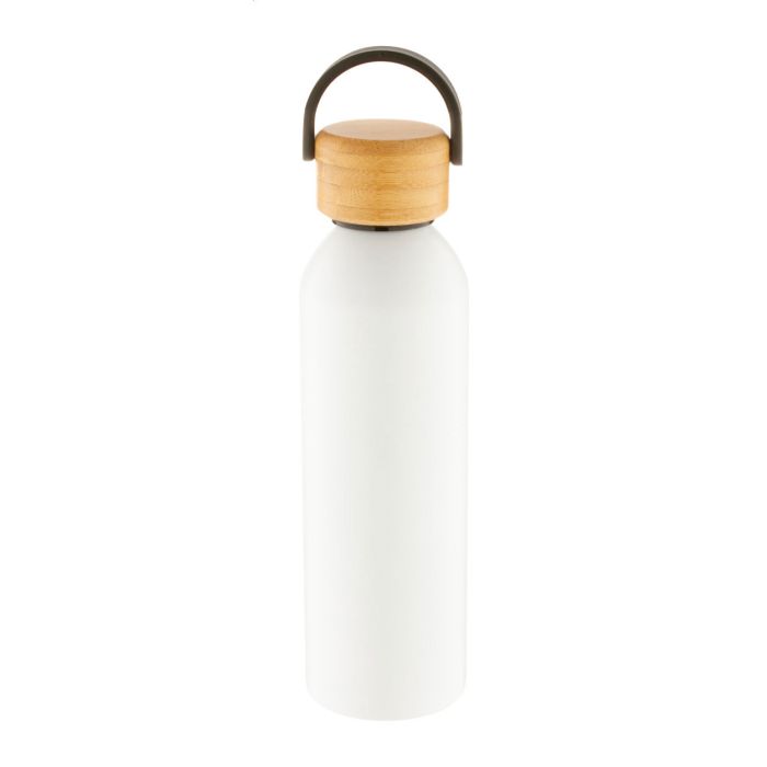 Sticlă din aluminiu cu capac de transport din bambus, 600 ml.