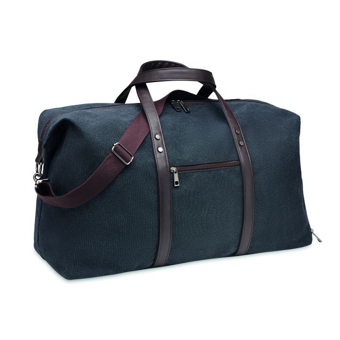 Geantă de voiaj din canvas de înaltă calitate de 450 gr/m², cu detalii din PU reciclat. Căptușeala este din RPET 210D. Curele puternice, reglabile și detașabile, incluse. Dimensiune perfectă pentru bagajul de mână.